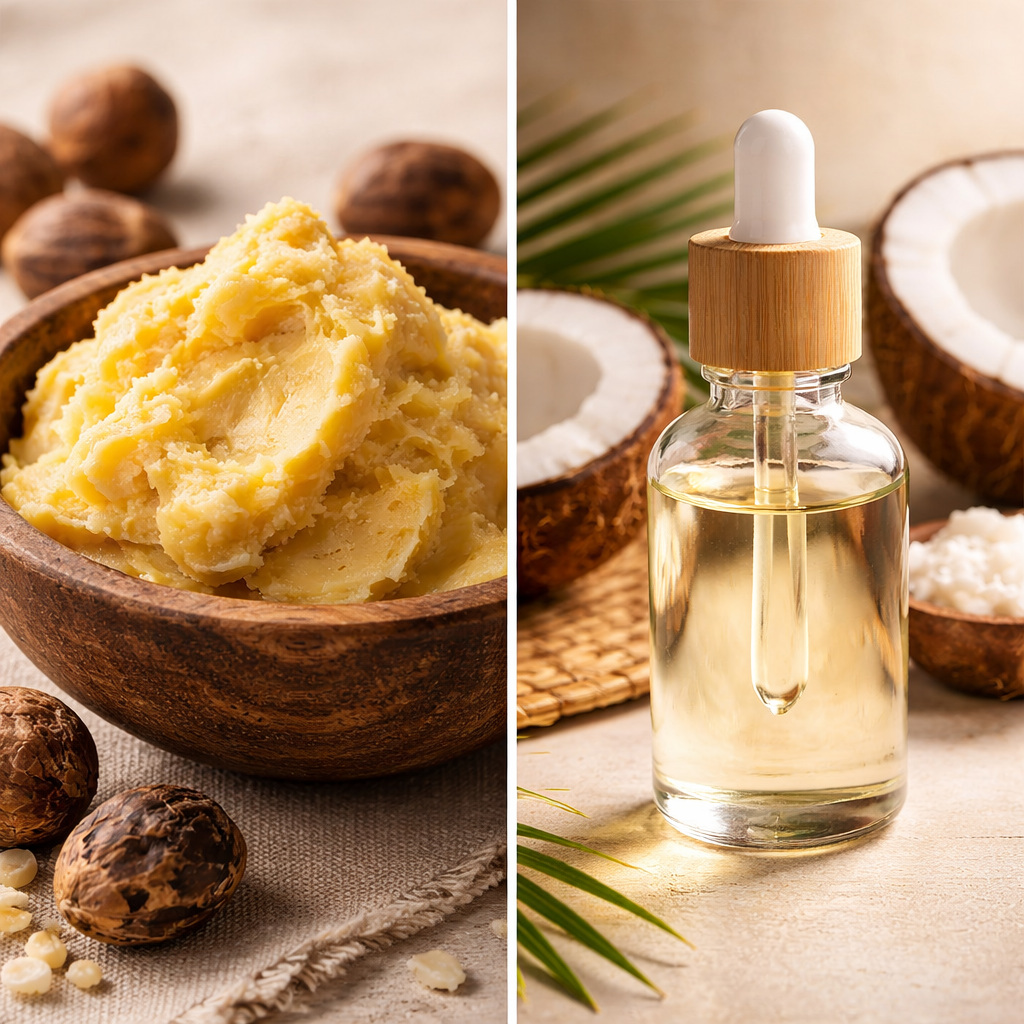 Nourish your skin with the purest traditions. Raw, unrefined Shea Butter and premium Coconut Oil, crafted to reveal your natural radiance.